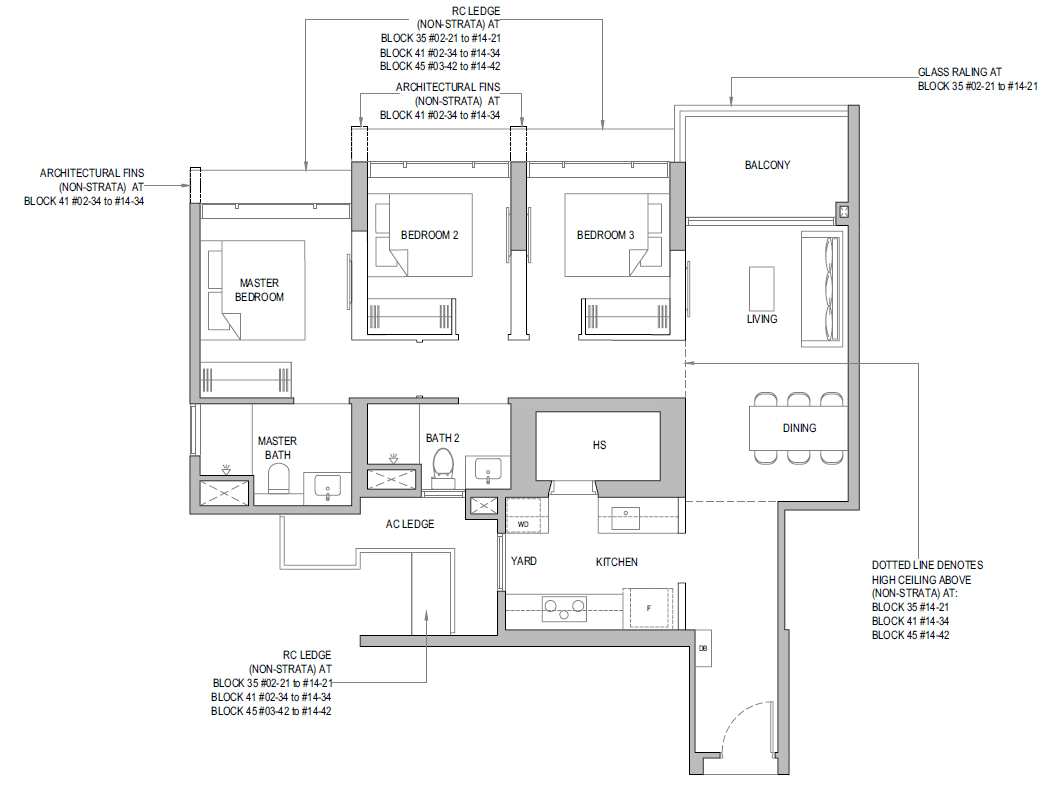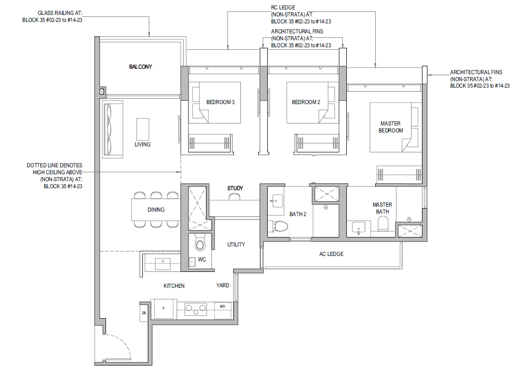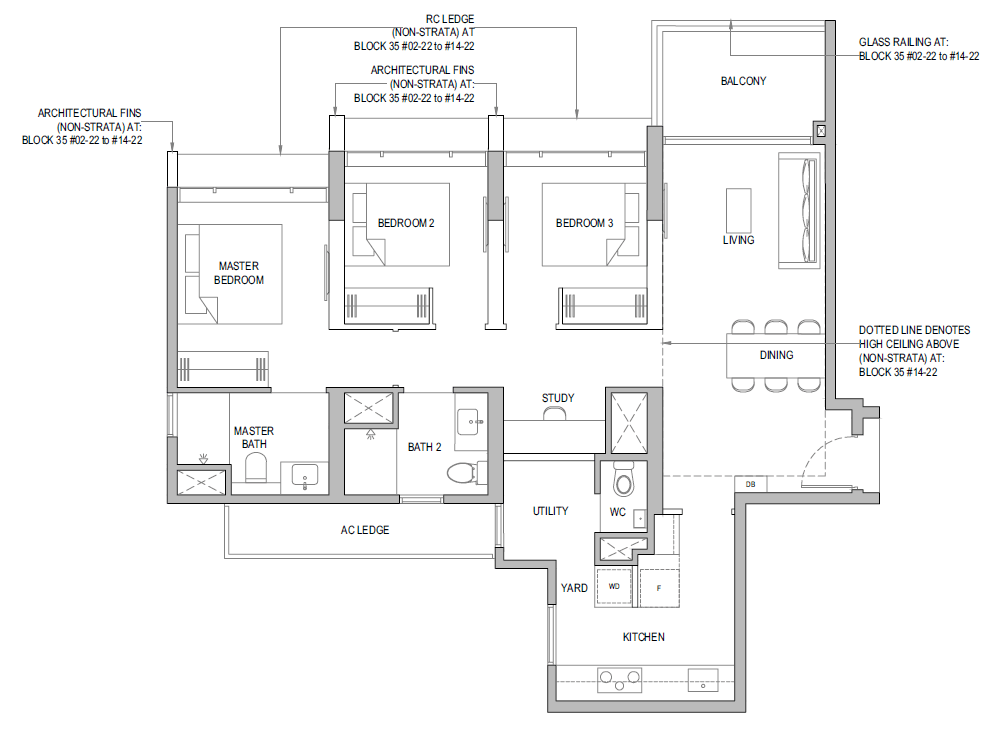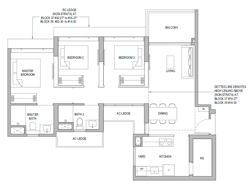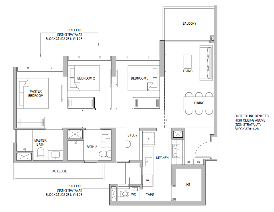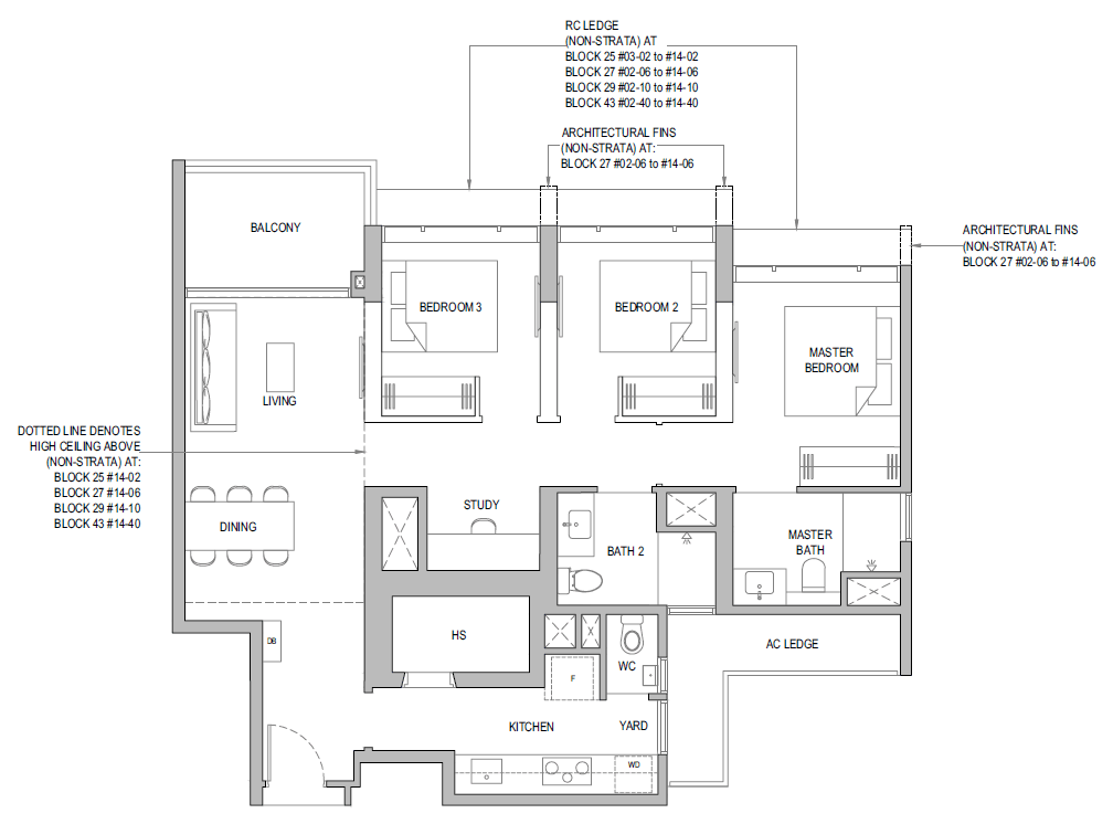 | 3 Bedroom + Yard + Study | 797 | 20 |