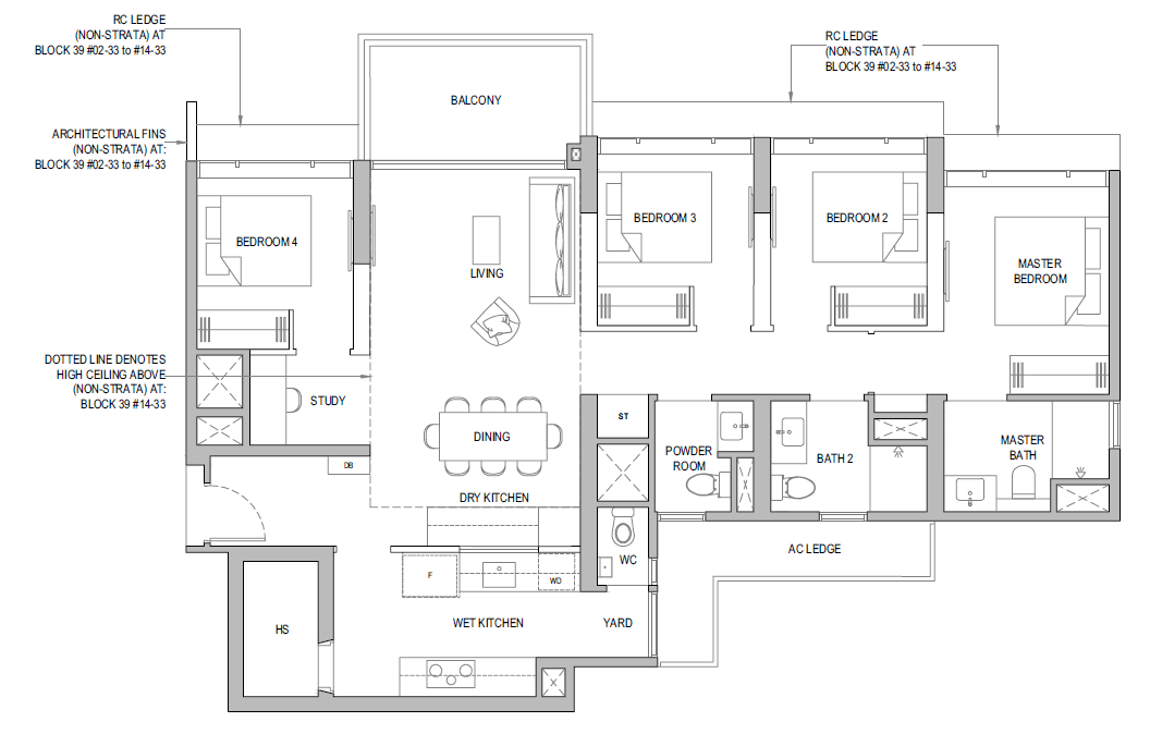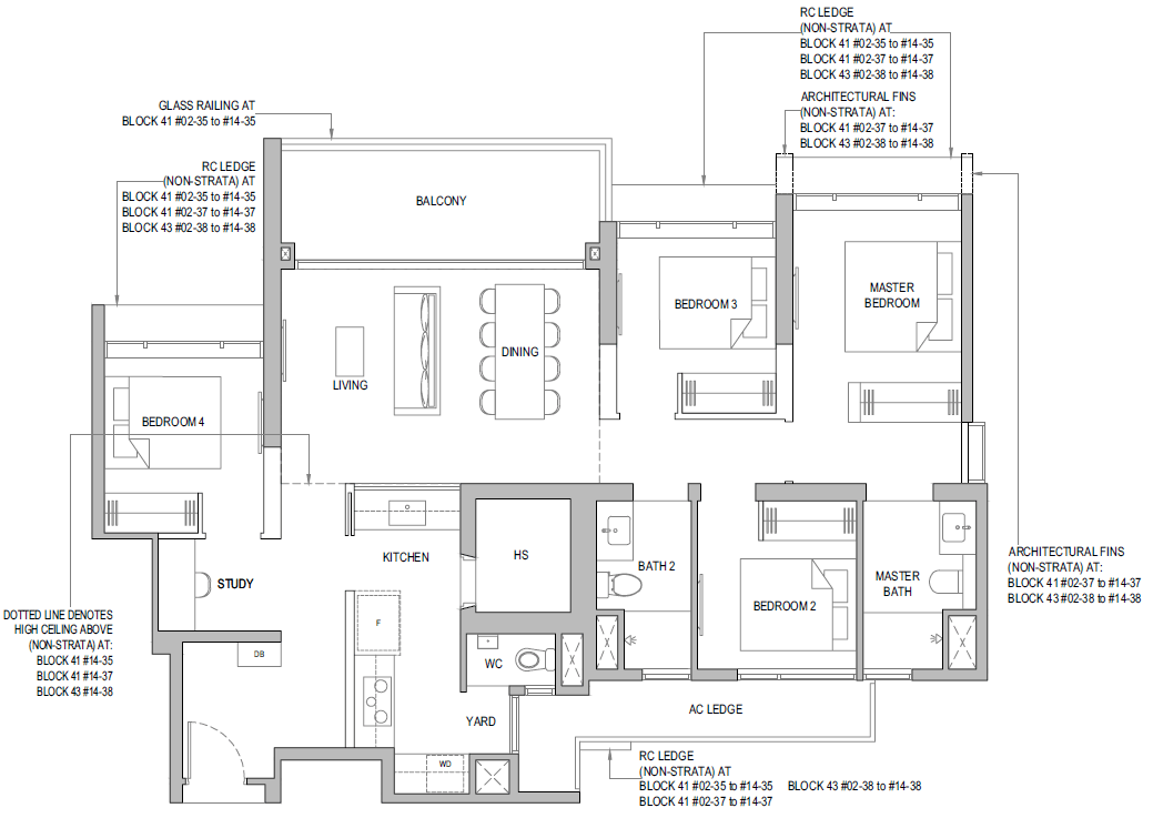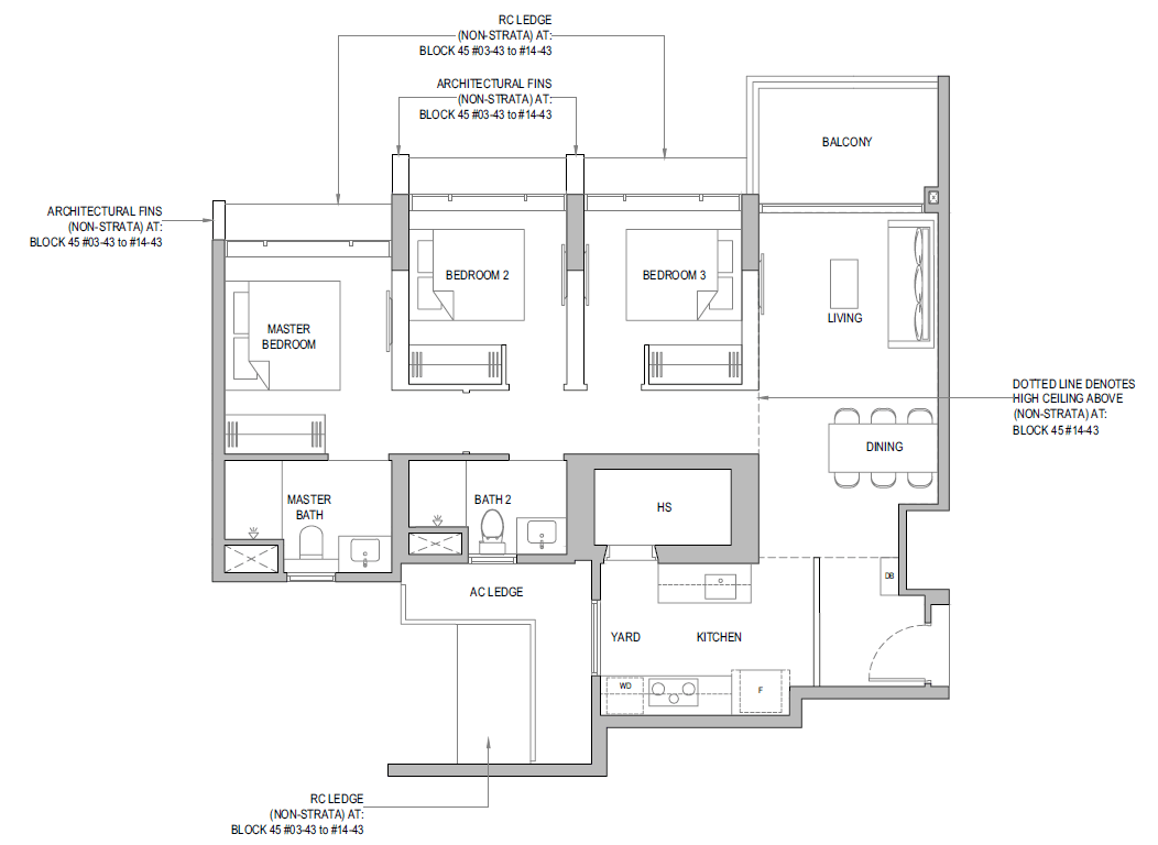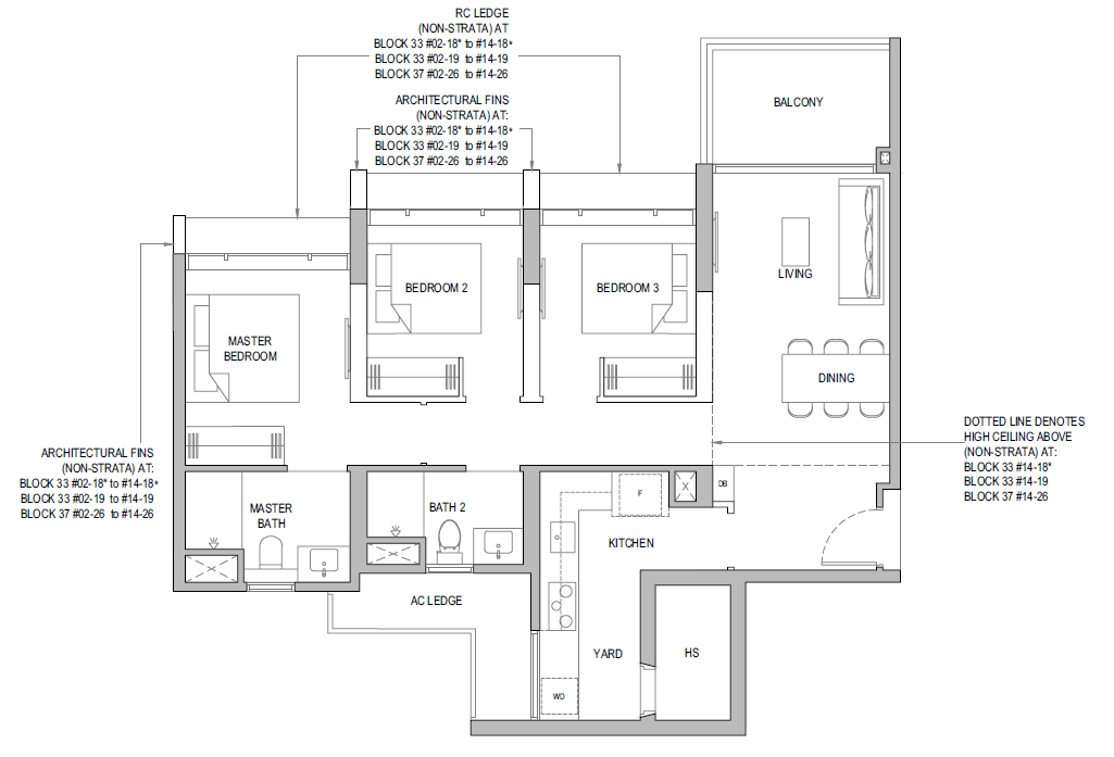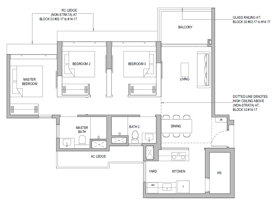 | 3 Bedroom + Yard + Study | 797 | 20 |