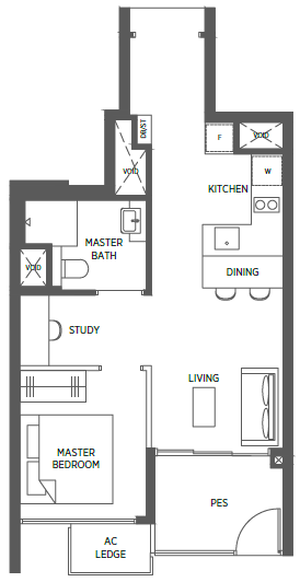 | 2 Bedroom + Study | 829 - 1023 | 124 |