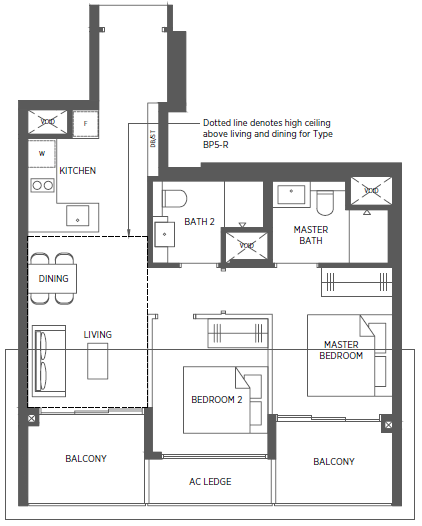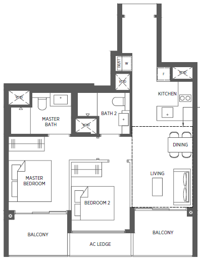 | 2 Bedroom (P) | 700 - 861 | 230 |