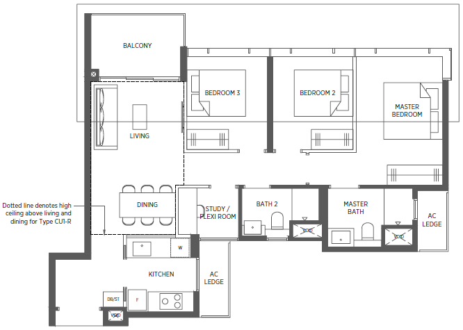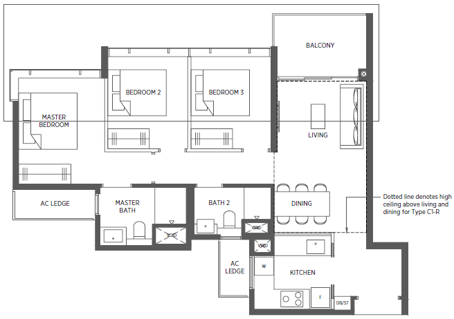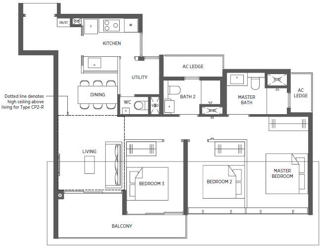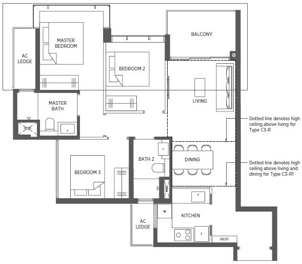 | 3 Bedroom + Flexi | 958 - 1119 | 126 |