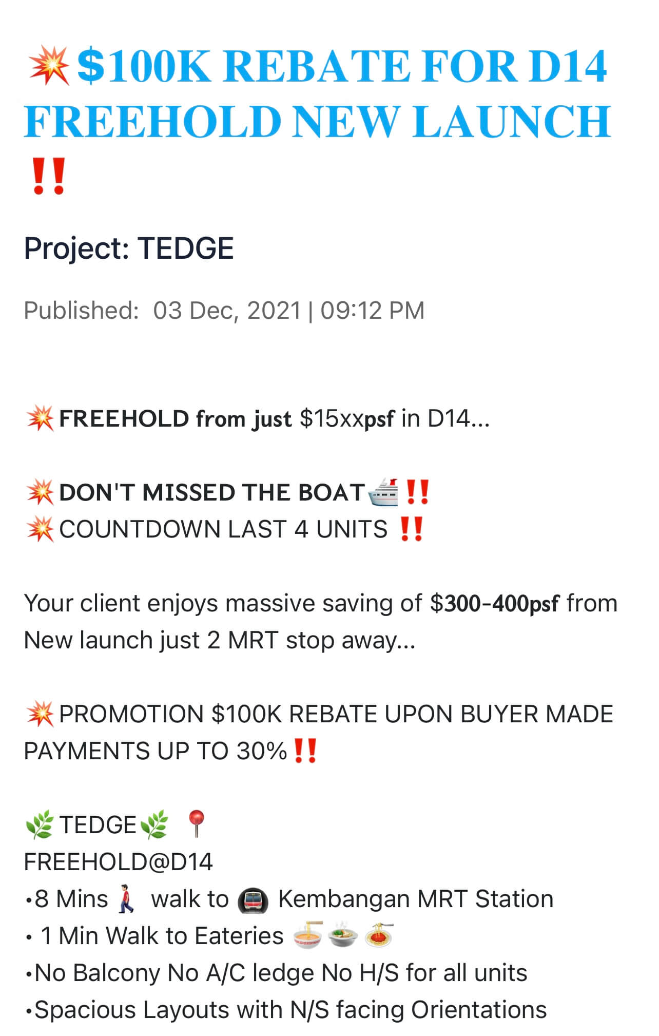 Tedge @ Eunos $100,000 Promotion (Limited Time)