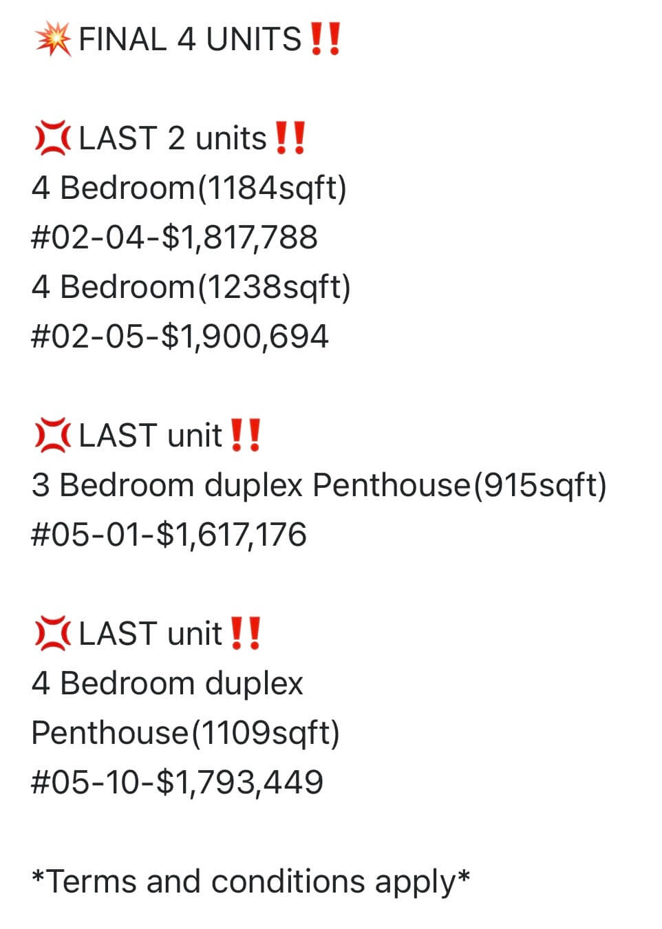 Act Fast Before Sold Out, Final 4 Units !