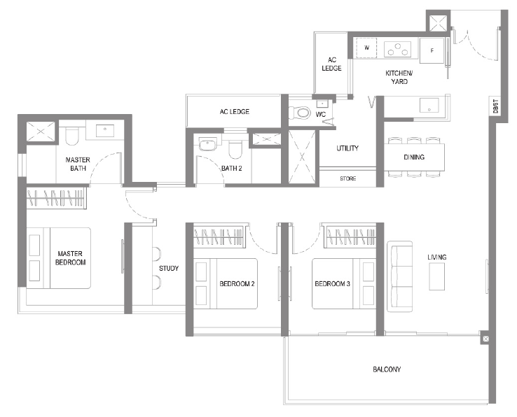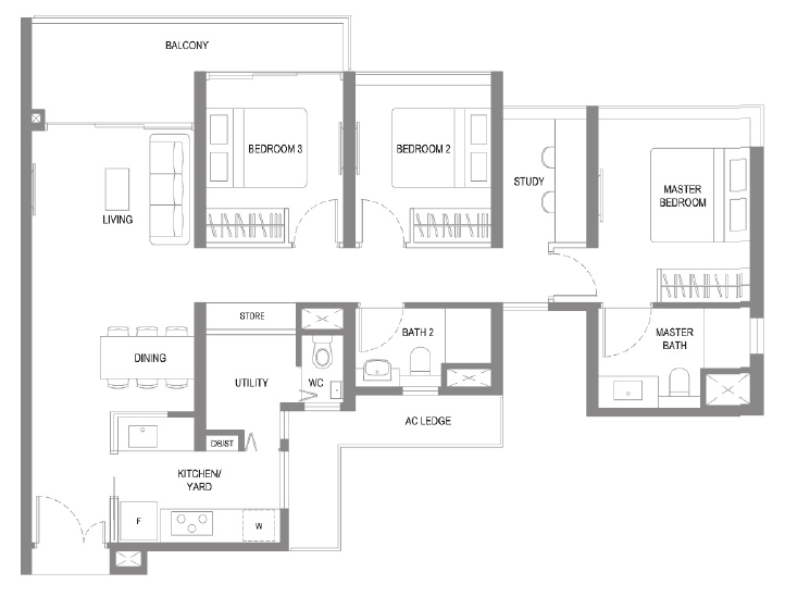 Type: C5S (3 Bedroom + Study)   Size: 1141 Sqft / 106 Sqm