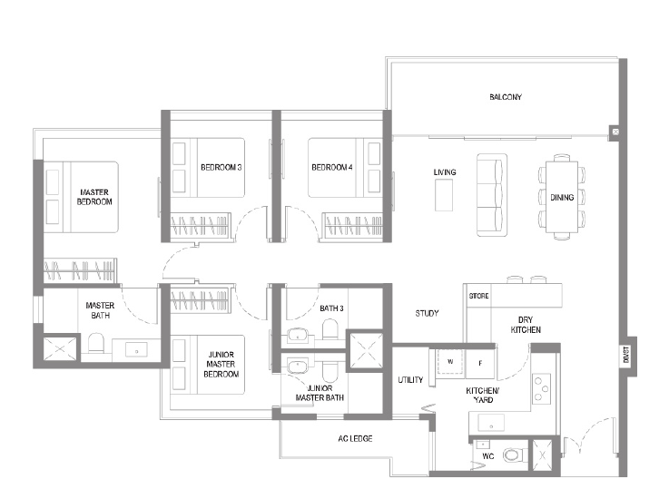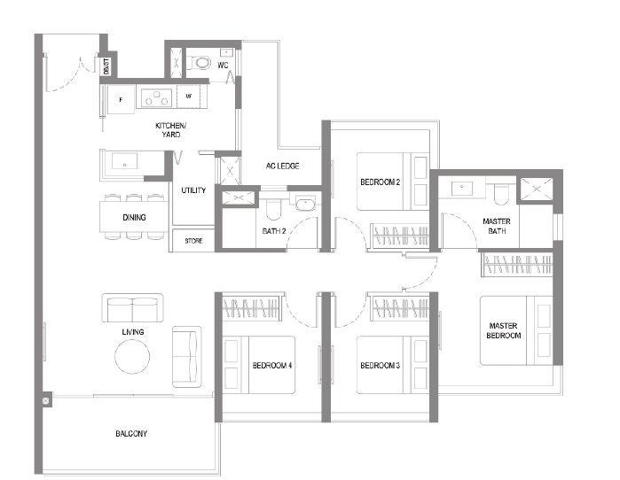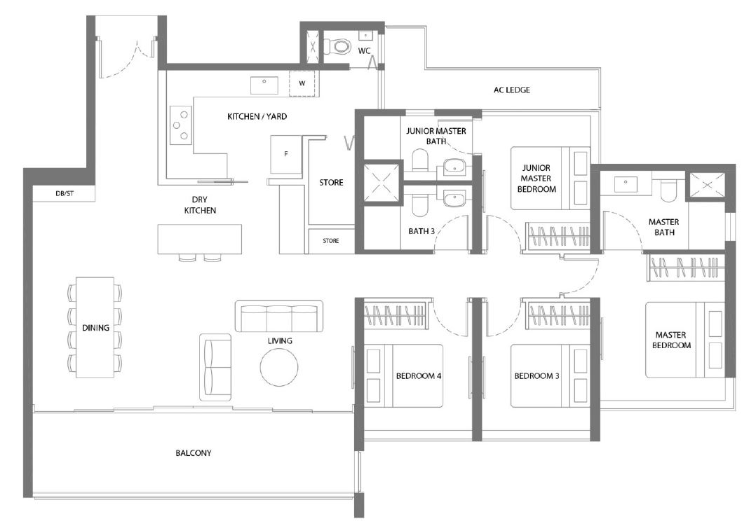 Type: D1 (4 Bedroom Executive)   Size: 1249 Sqft / 116 Sqm